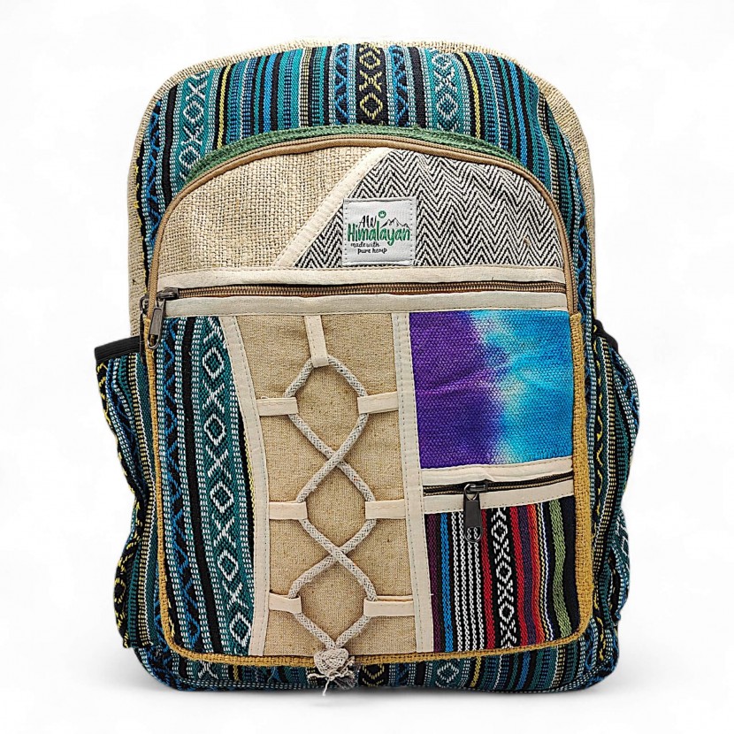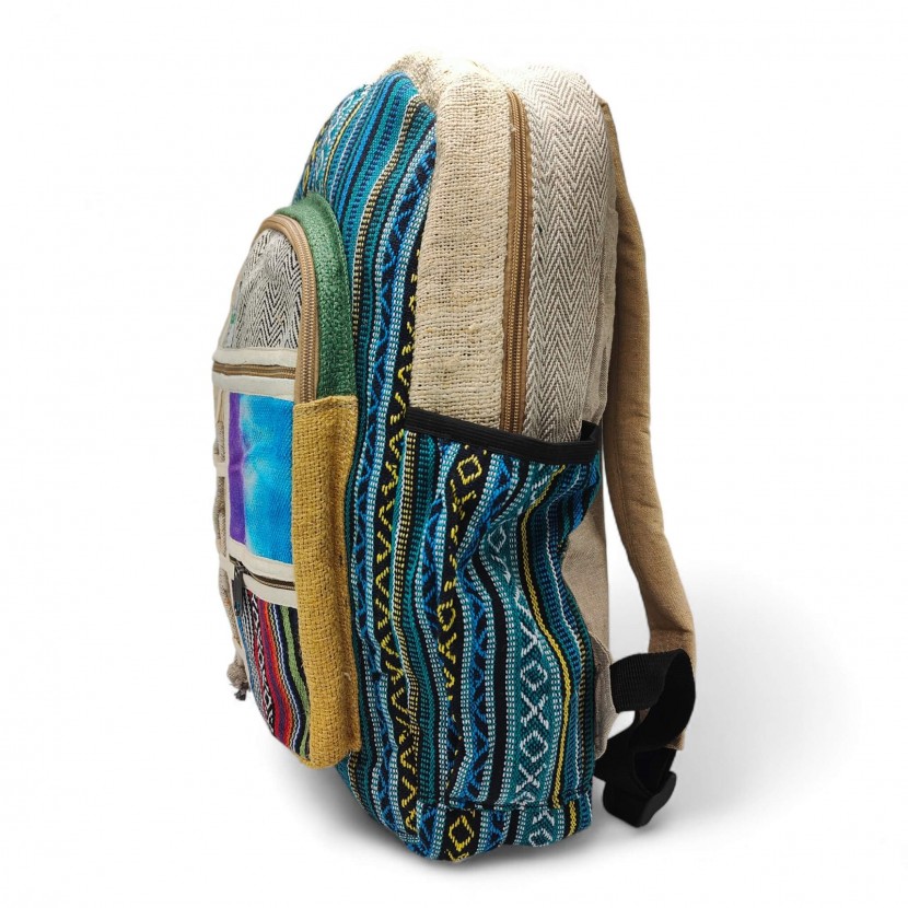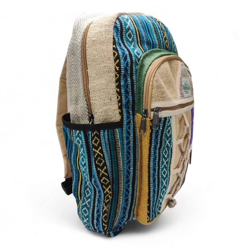 Plecak jest ręcznie tkany z naturalnych włókien konopi. Włókna te są niezwykle silne i wytrzymałe, dzięki czemu posłuży nam przez długi czas. Ciasne obszycie środka plecaka bawełną sprawia, że jest on trwały i wytrzyma spore obciążenie.