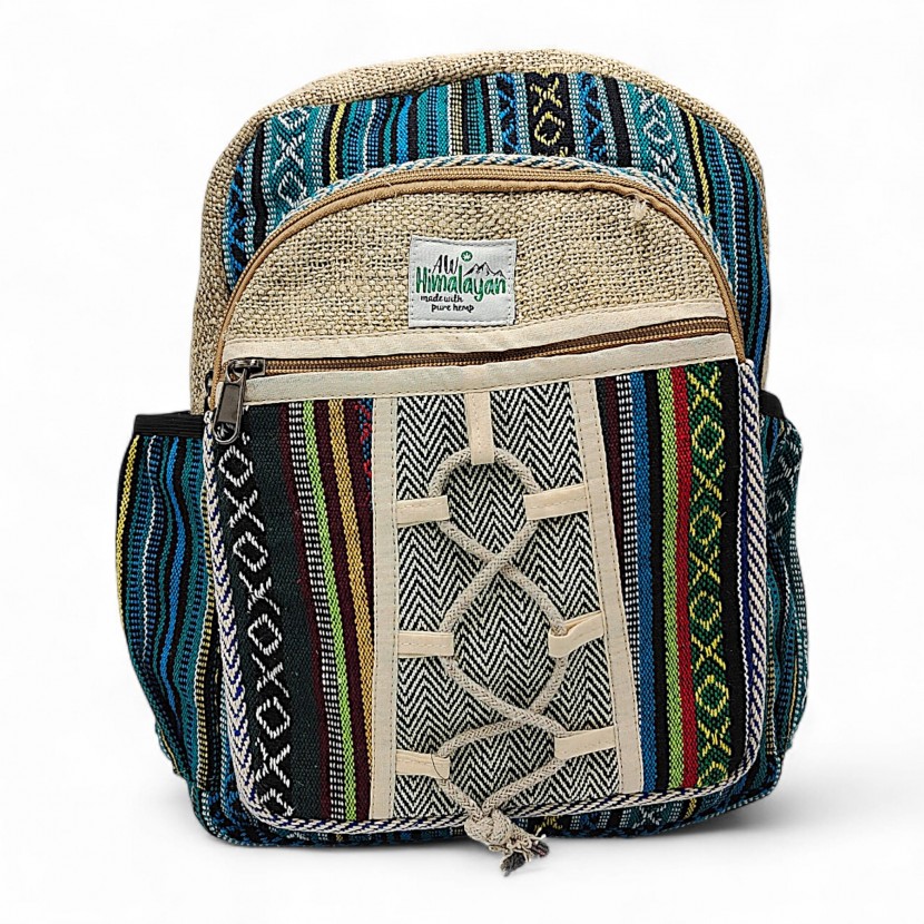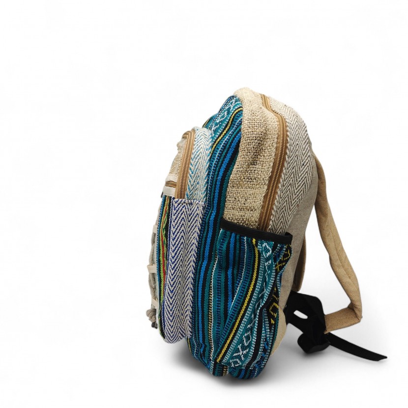 Plecak jest ręcznie tkany z naturalnych włókien konopi. Włókna te są niezwykle silne i wytrzymałe, dzięki czemu posłuży nam przez długi czas. Ciasne obszycie środka plecaka bawełną sprawia, że jest on trwały i wytrzyma spore obciążenie.