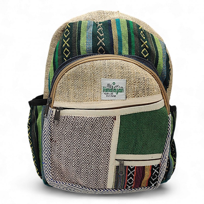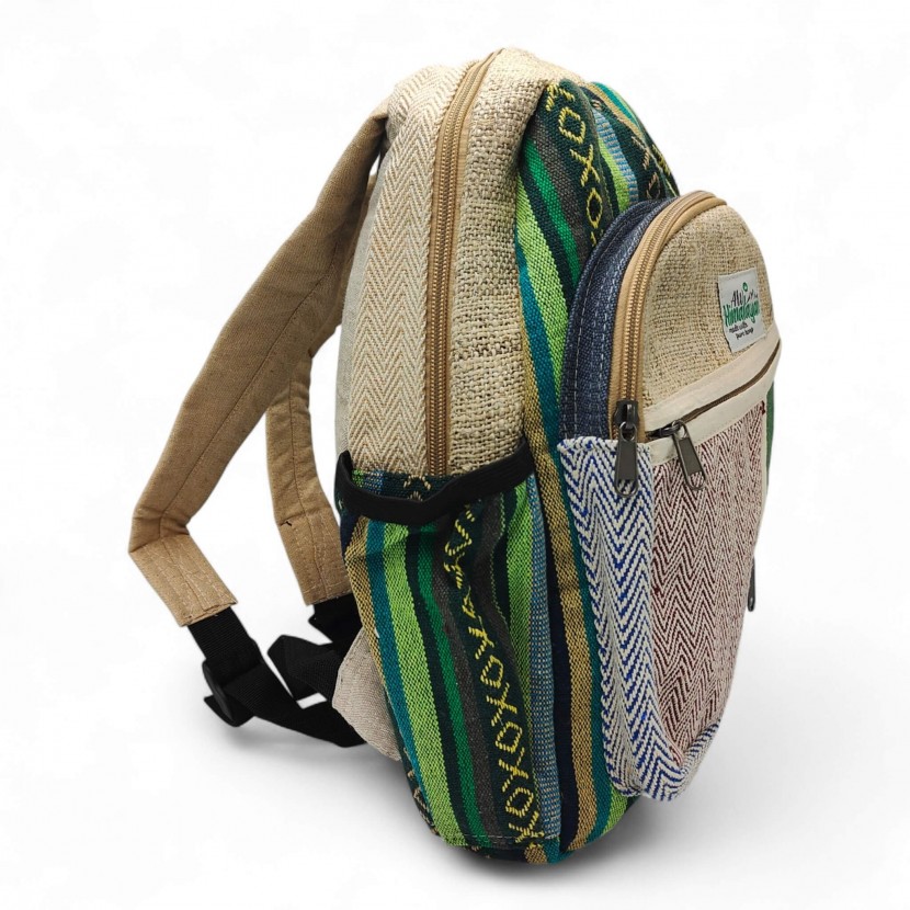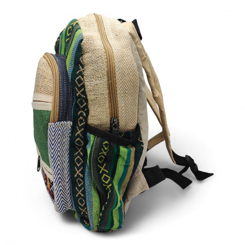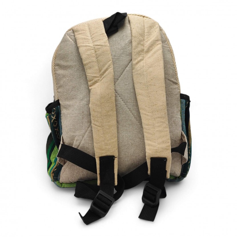 Plecak jest ręcznie tkany z naturalnych włókien konopi. Włókna te są niezwykle silne i wytrzymałe, dzięki czemu posłuży nam przez długi czas. Ciasne obszycie środka plecaka bawełną sprawia, że jest on trwały i wytrzyma spore obciążenie.