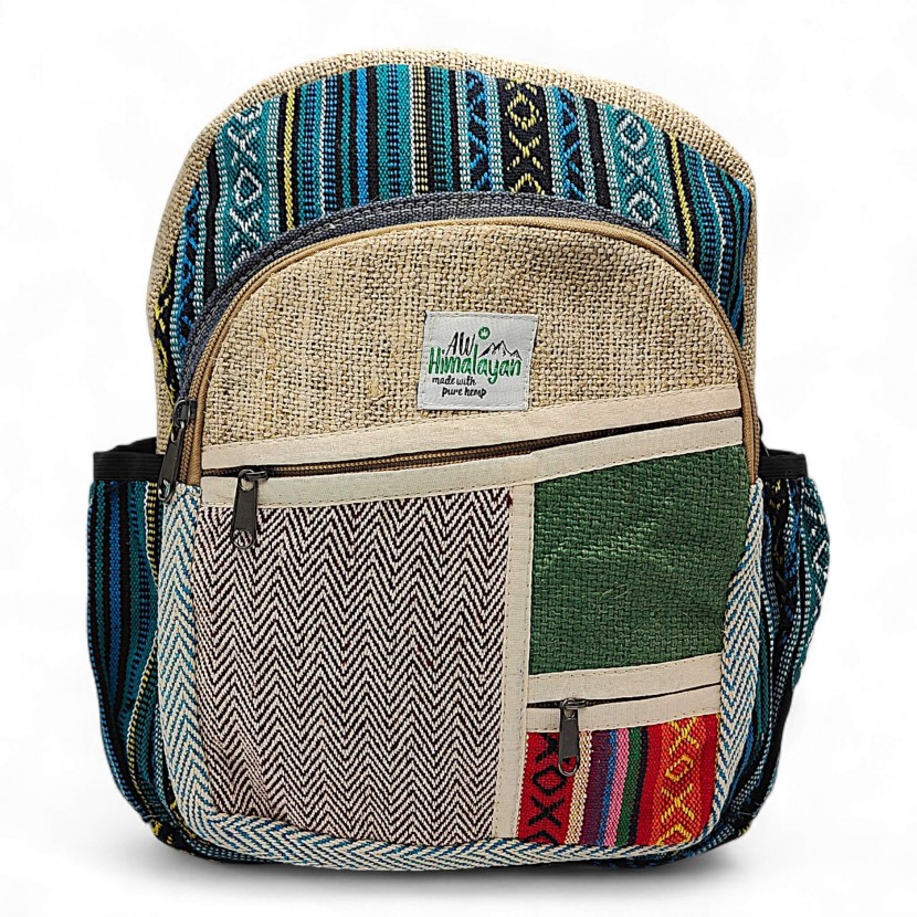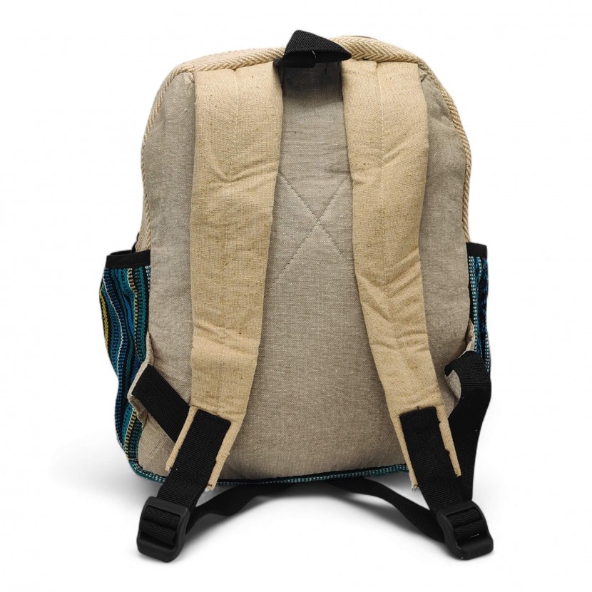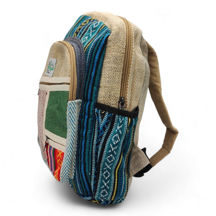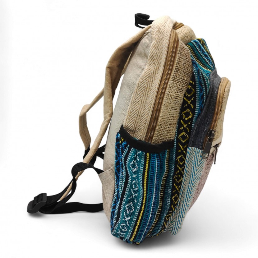 Plecak jest ręcznie tkany z naturalnych włókien konopi. Włókna te są niezwykle silne i wytrzymałe, dzięki czemu posłuży nam przez długi czas. Ciasne obszycie środka plecaka bawełną sprawia, że jest on trwały i wytrzyma spore obciążenie.